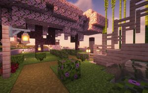 Парк построен marishaPRO из розовой вишневой древесины и в нем располагается небольшой пруд, через который проложен мостик. Освещение сделано с помощью ламп, тропинка огорожена кустами азалии. В парке также есть "лавка для порева".